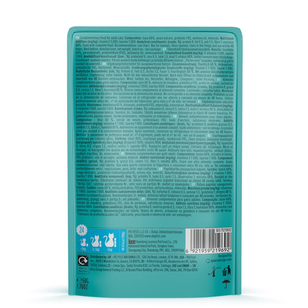 Composition: Tuna 60%, Yeast extract, Prebiotic FOS, Anchovy oil, minerals.