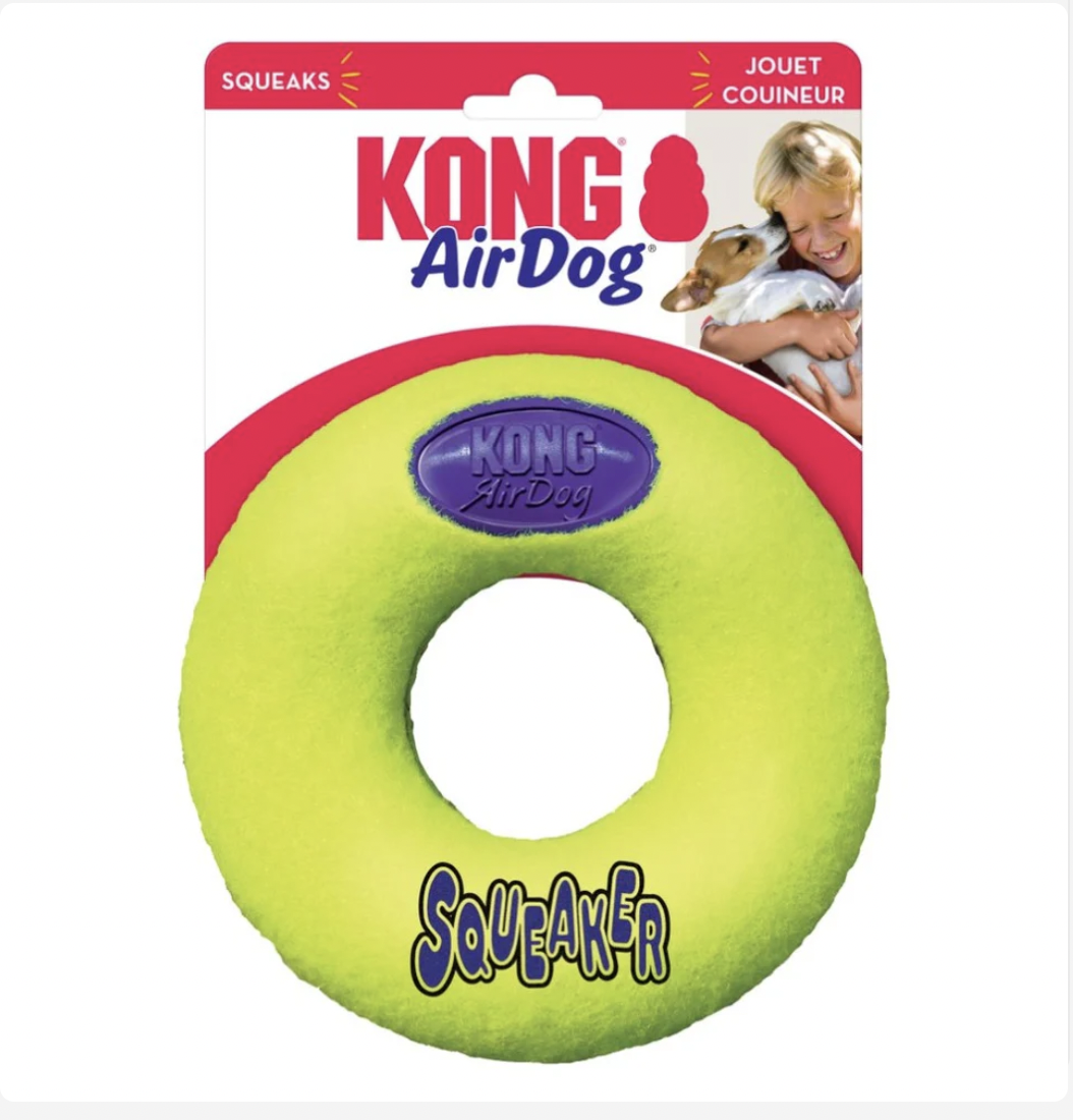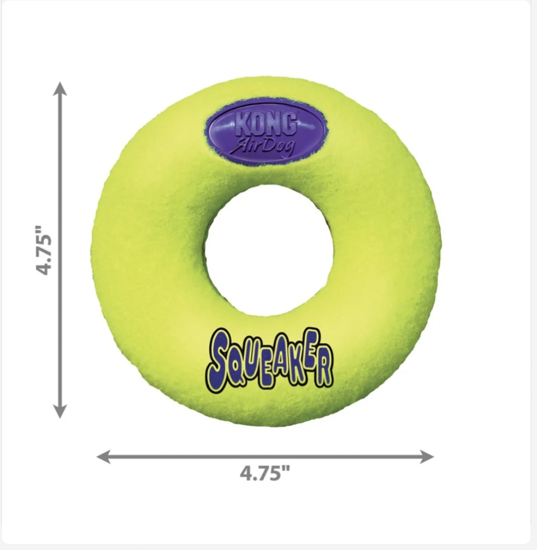 KONG AirDog® Squeaker Donut combines two classic dog toys -the tennis ball and the squeaker – to create the perfect fetch toy. The non-abrasive, high-quality material will not wear down dogs’ teeth. Find your dog’s favorite AirDog® shape and let the games begin.