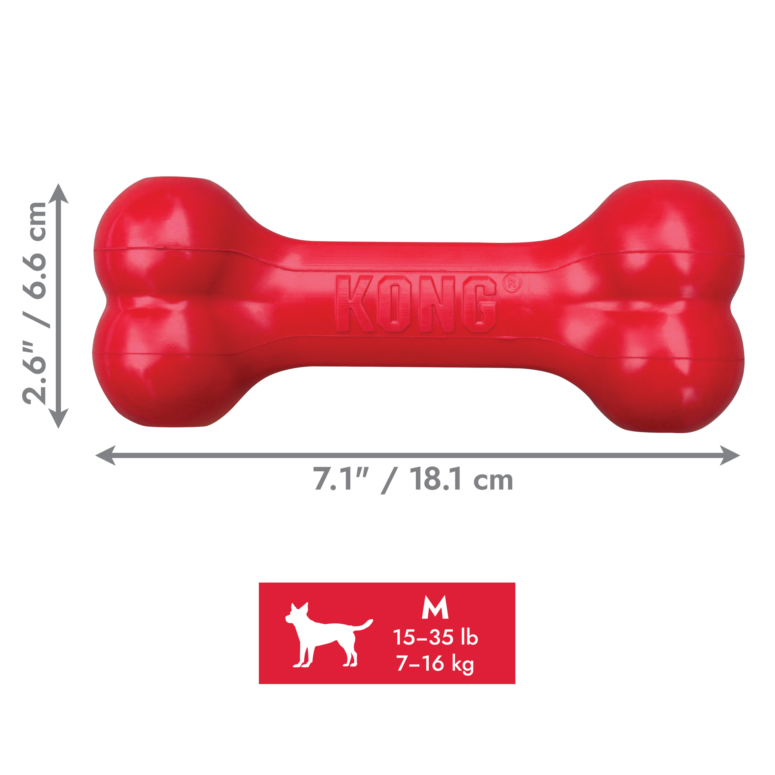 • Durable natural KONG Rubber; bone shaped for chewing satisfaction