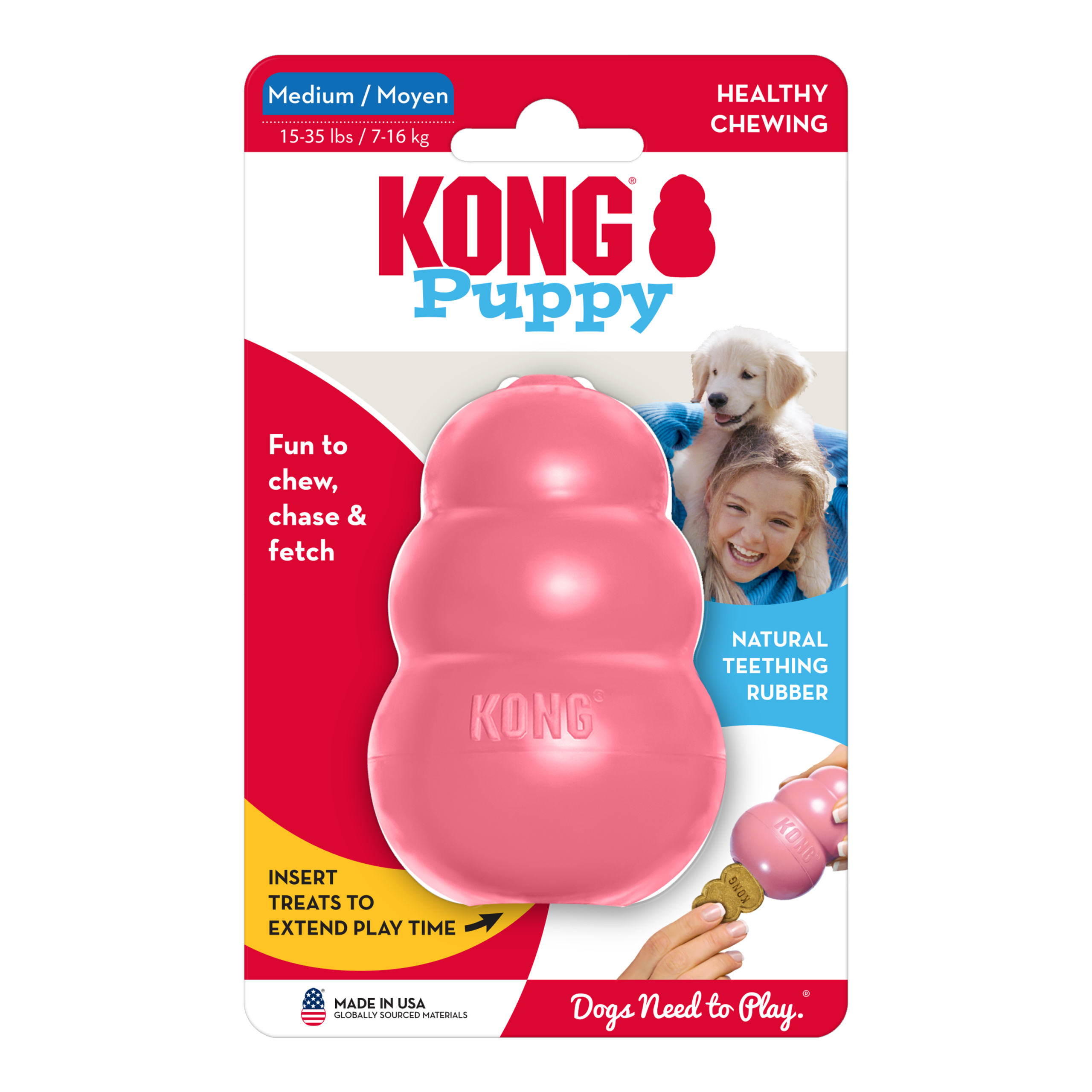 • Soft puppy KONG rubber formula is customized for puppy teeth and gums