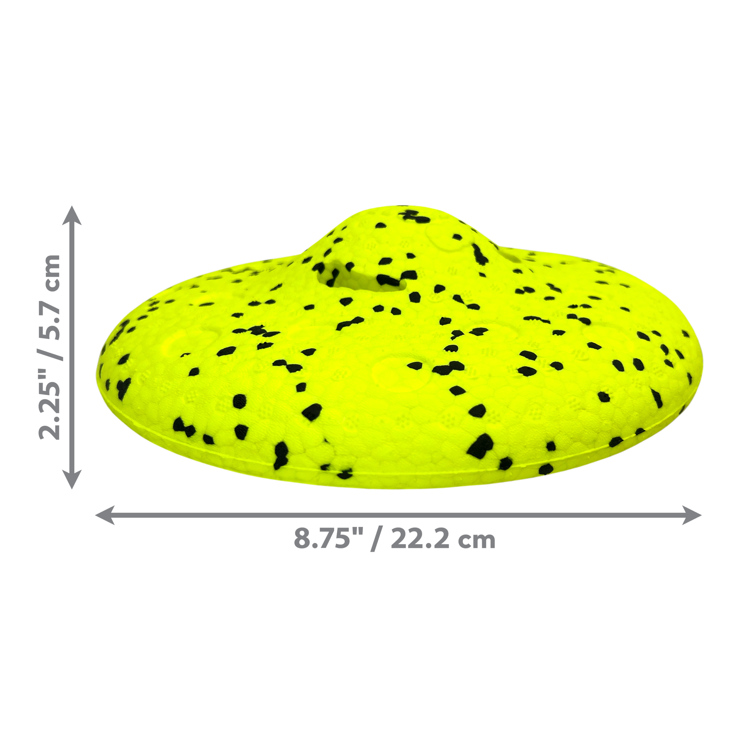 Hi-tech material borrowed from the sporting goods industry make this bouncy, flexible, gliding & hovering disc so rugged it’s guaranteed to last. Bite-defying, self-healing properties are designed to endure several seasons of fun. Lightweight material floats for water play.