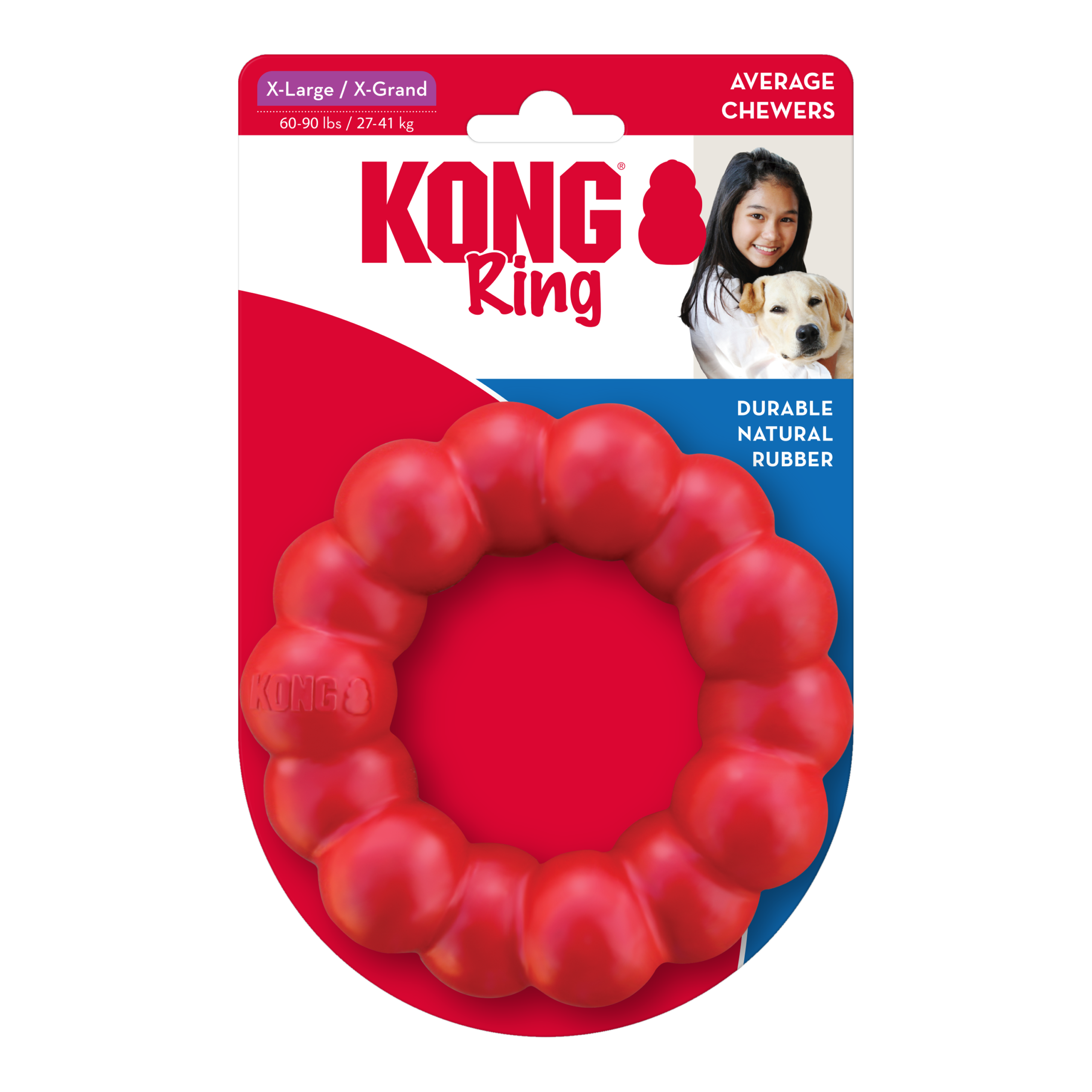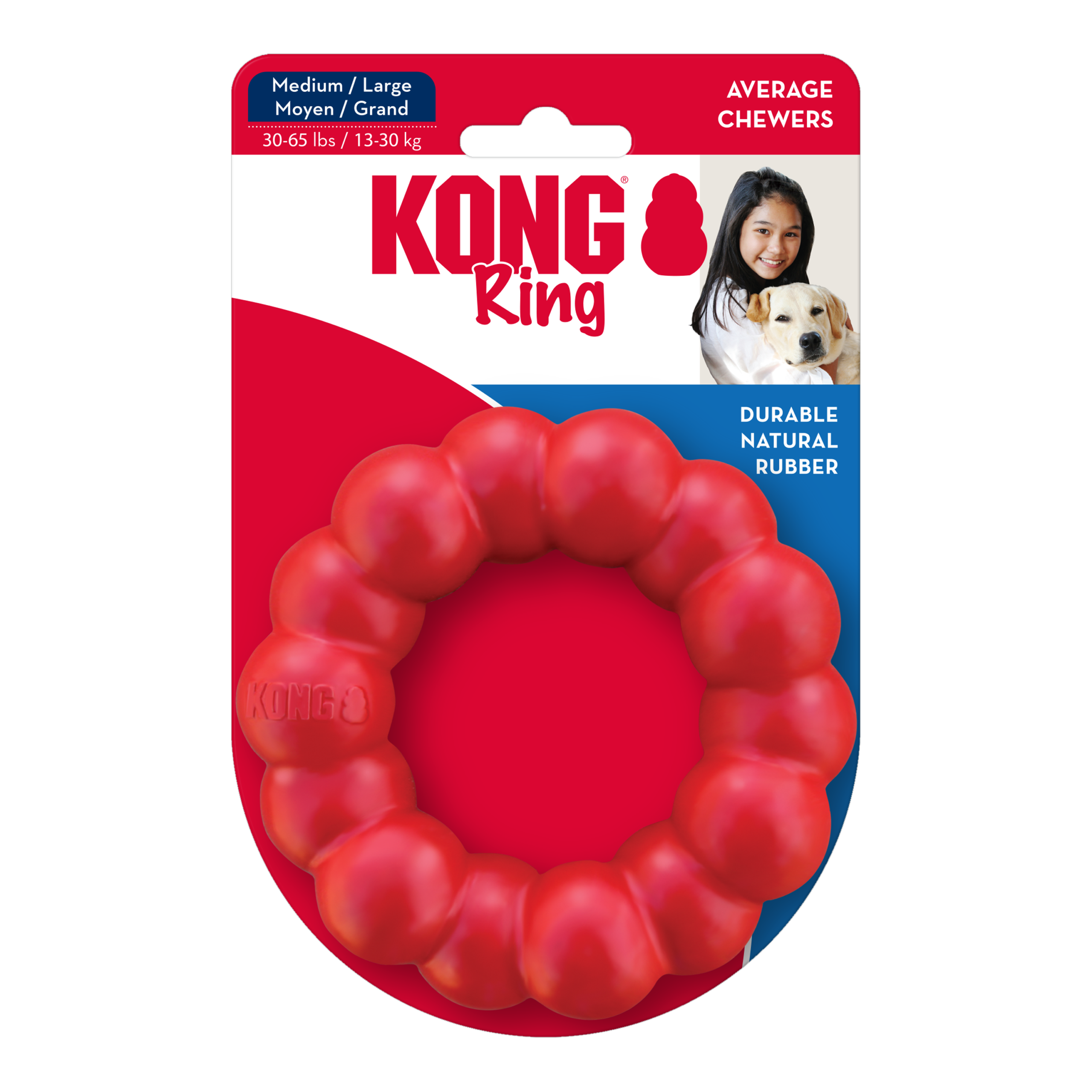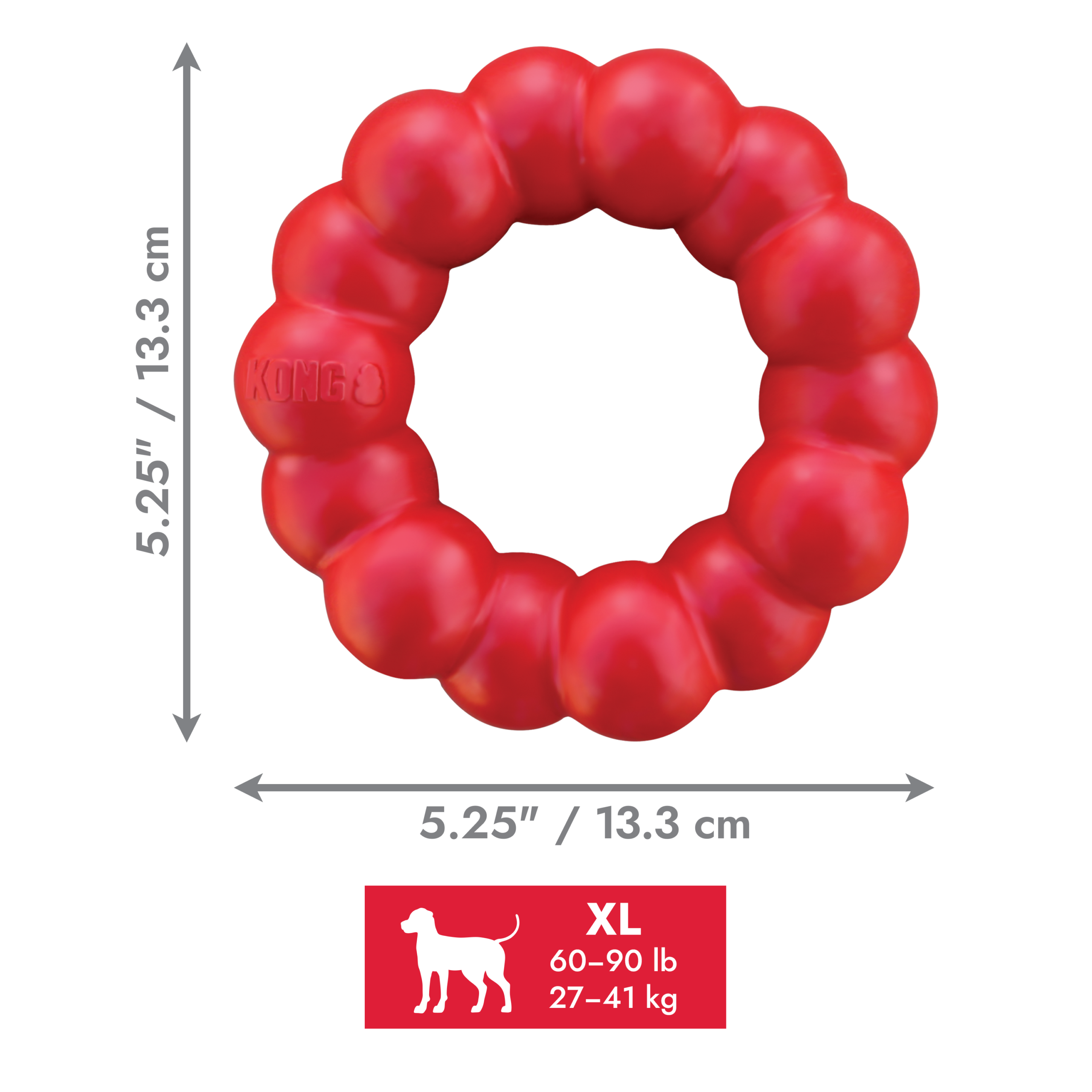 The KONG® Ring is designed for long lasting chew sessions offering enrichment and satisfying a dog’s natural instinct to chew. Made from KONG natural red rubber, the KONG Ring provides ultra-durability and added nubs to give your dog a delightful chewing experience while promoting healthy teeth and gums.