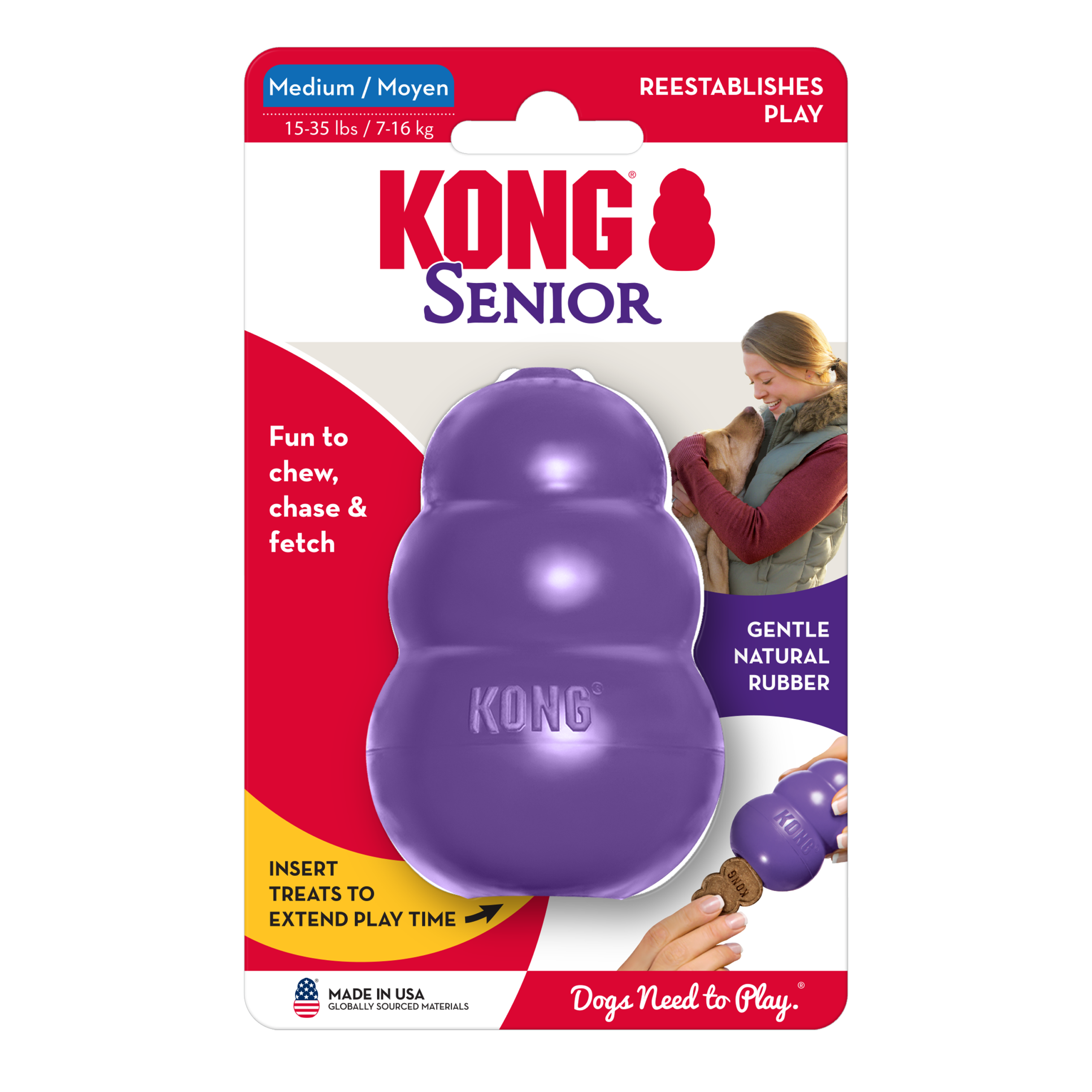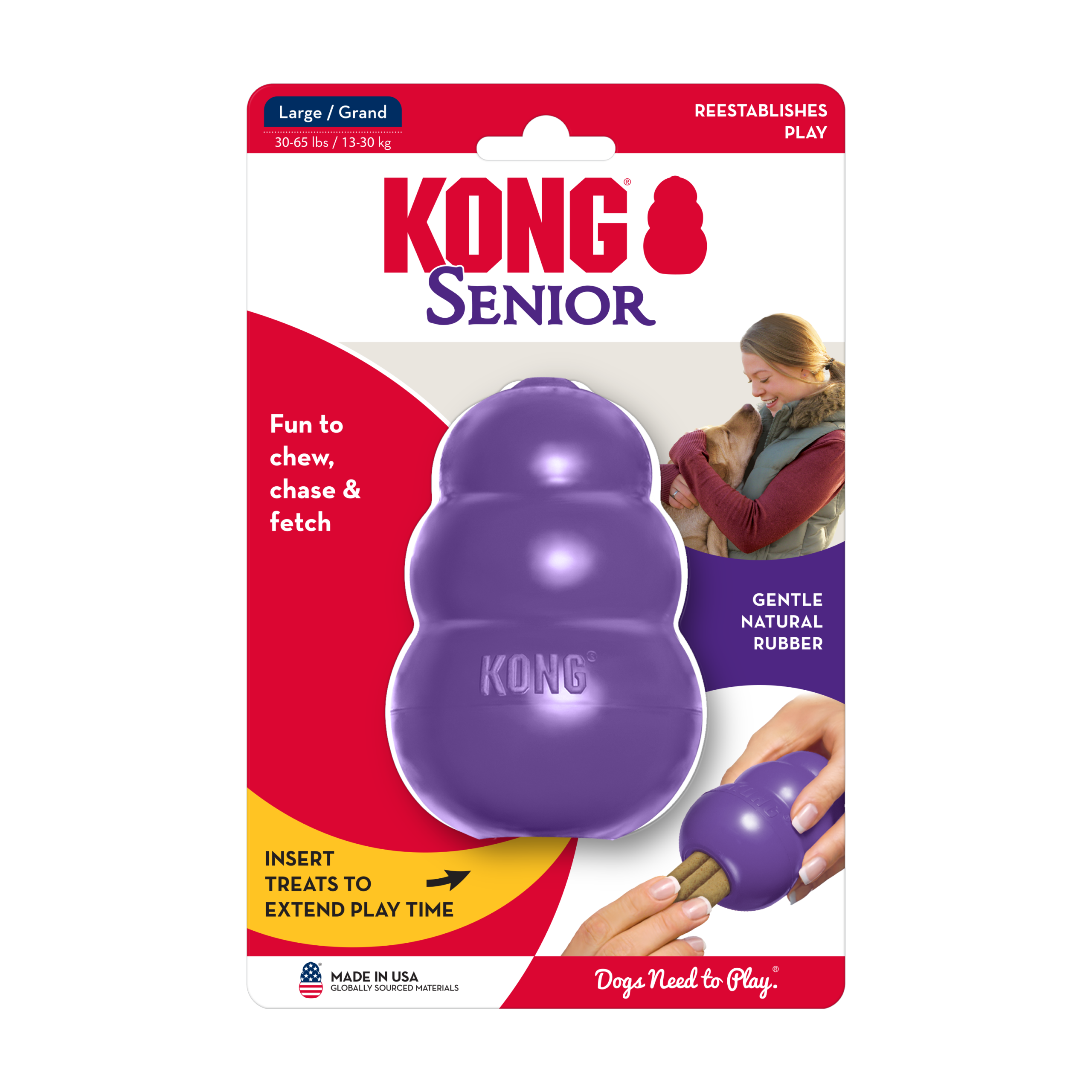 - KONG Senior rubber formula is customized for an aging dog’ chewing and play needs