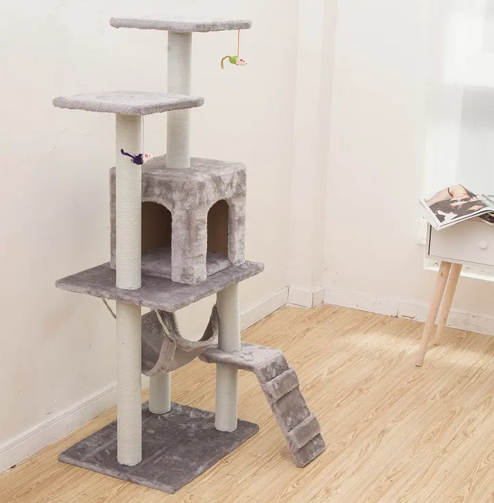 Create the perfect haven for your feline friend with this Large Grey Cat Tree! Featuring plush lounging surfaces, a cozy hammock, and sisal-wrapped scratching posts, this durable and stylish tree promotes healthy claws, relaxation, and play. Easy to assemble, it fits seamlessly into any corner, making it ideal for both kittens and adult cats.