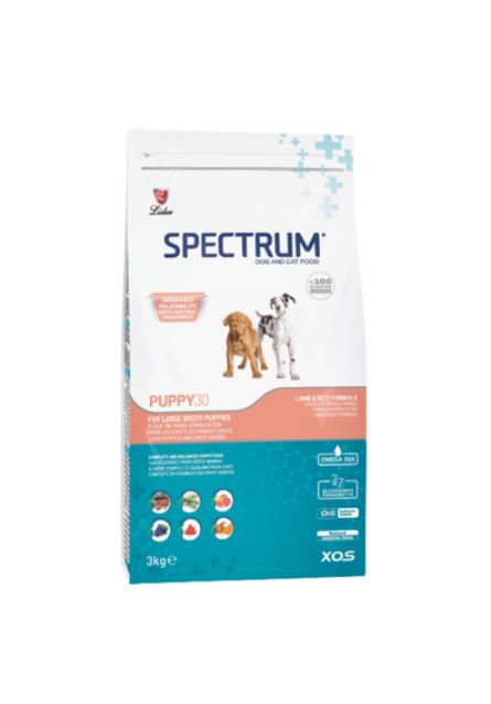 SPECTRUM Puppy30 Large Breed, specially formulated complete and balanced ultra premium puppy food to meet nutritional requirements of large breed puppies (expected adult weight 25 kg or more) from 2 to 14 months of age.